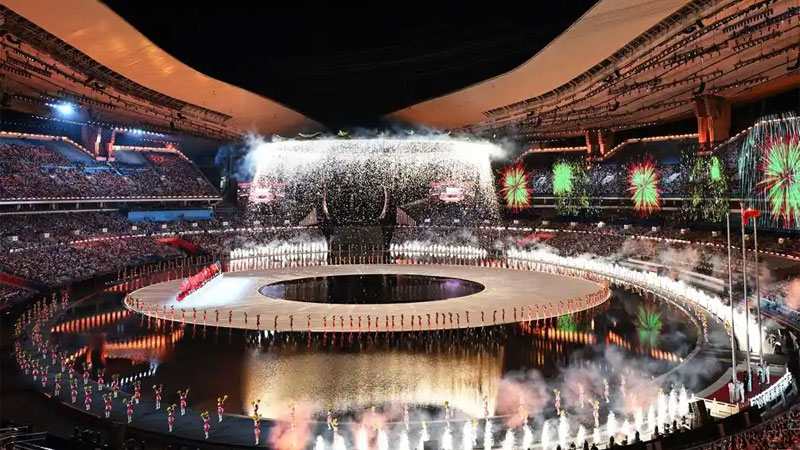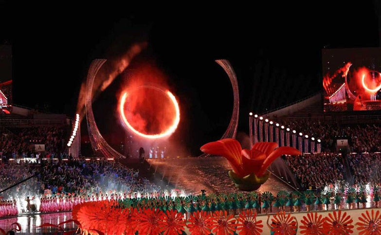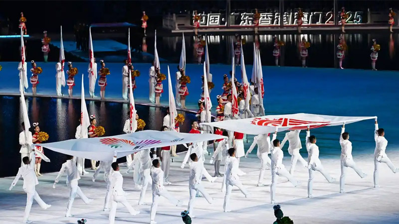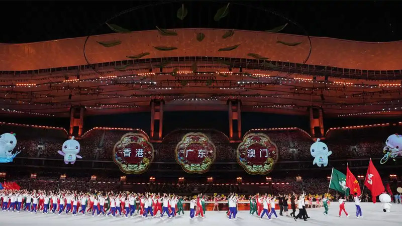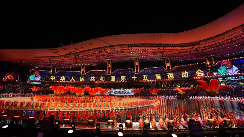 中华人民共和国国旗、中华人民共和国运动会会旗、第十五届全运会会旗入场