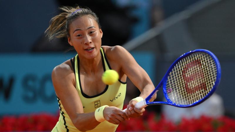 [图]郑钦文1-2不敌莱巴金娜 无缘马德里大师赛16强