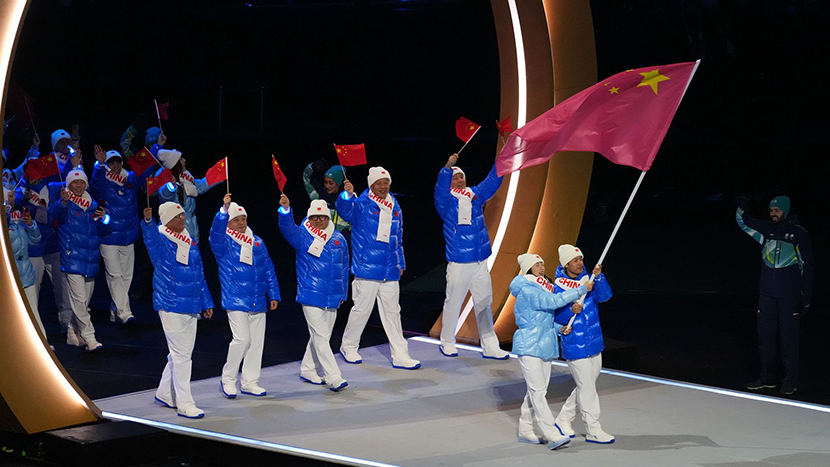 [图]米兰-科尔蒂纳冬奥会开幕式 中国体育代表团入场