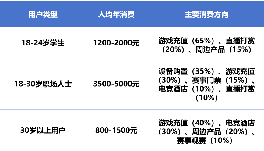 同时,针对四川省内电子竞技活跃用户的消费习惯进行了调研,结合活跃用户的年龄段及社会身份,得出了以下结论: