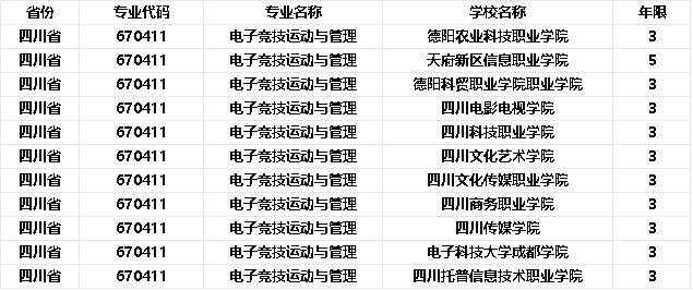 截至2025年12月31日,四川省内共有13所大专院校开设了电子竞技运动相关专业,11所正常开班,5所中职院校开设了电子竞技方向,5所技工类学校开设电子竞技专业。学科教育均聚焦于电竞赛事运营、赛事直转播、俱乐部管理、内容创作等复合型人才培养。