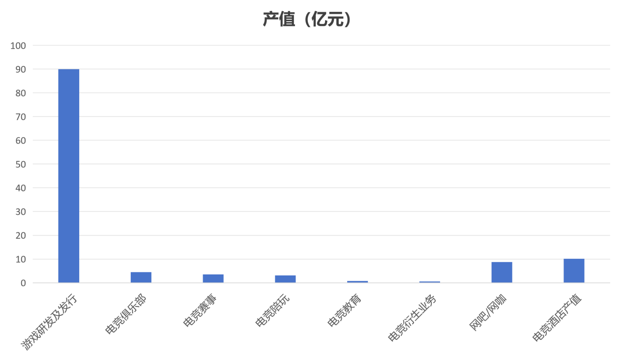 其中,电竞赛事运营较去年产值有所上升,电竞陪玩产业成为总体产业的新增长极,主要得益于本土赛事承接能力的提高以及陪玩产业的规范化。