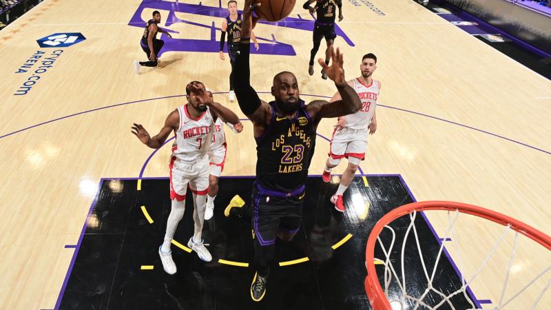 [图]詹姆斯28+8+7杜兰特复出23+6 湖人力克火箭